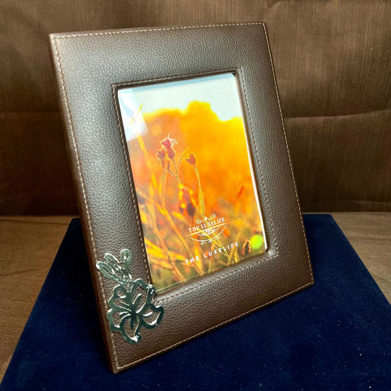 The Luxelife Dark Beige with flower in centre Embroidered Face Towel